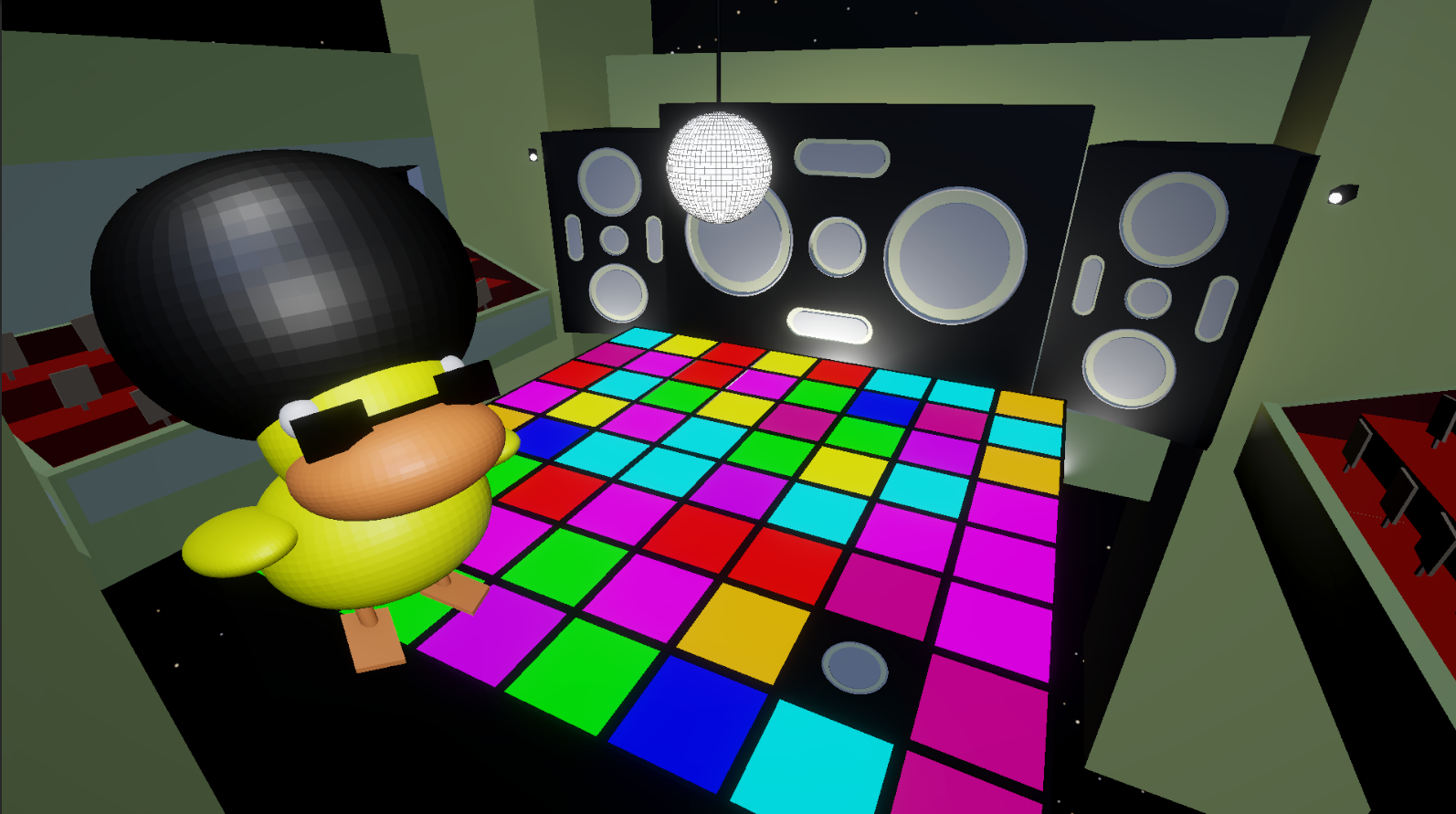 A fast paced game where Duck-Oh, a fabulous afro duck, will have to dodge incoming soundwaves coming from different speakers placed around the dance floor in order to prove he's the best dancer!